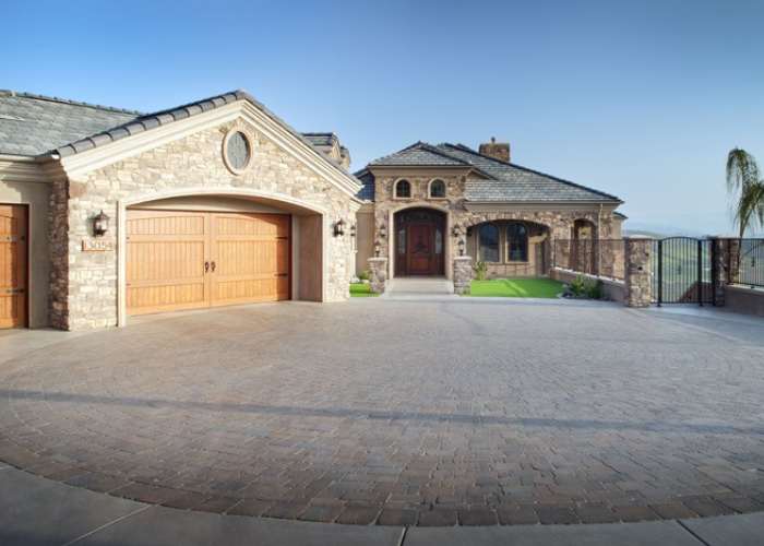 The stylish elegance of pavers driveways has led contractors to copy its appearance with stamped concrete. Concrete slabs can be given a similar color and patterns to pavers but ultimately the durability, low maintenance, and permeability of pavers cannot be simulated.